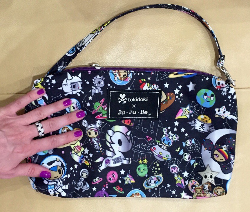 73. Сумочка-клатч на выход без ребенка: вмещает ключи, телефон, кошелек, салфетки, солнечные очки, помаду и пудреницу