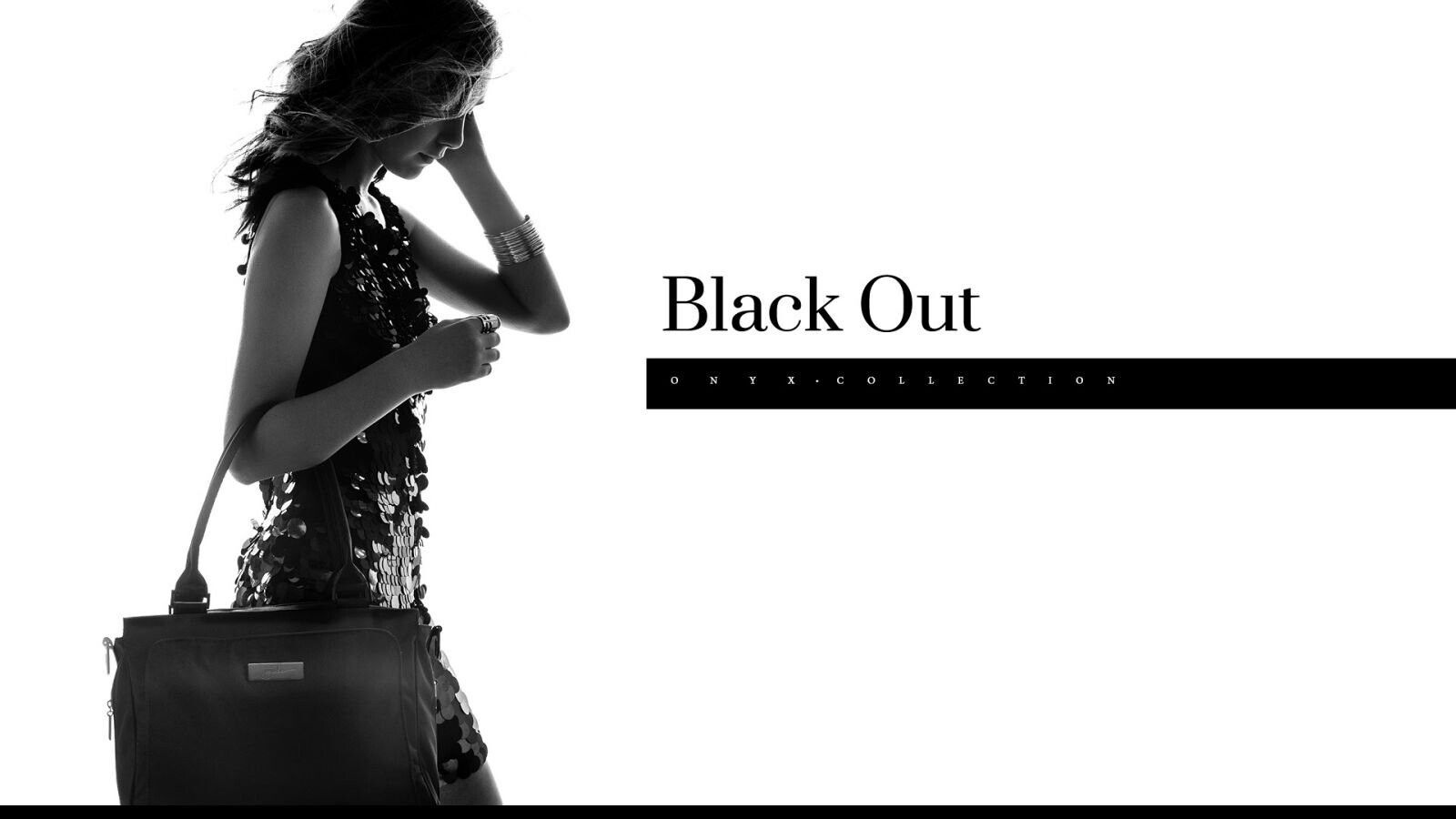Дизайнеры Ju-Ju-Be учли пожелания покупательниц и включили в новую Оникс-коллекцию образ «Black Out». Мистический черный во всем: ткань, обработанная практичным тефлоновым покрытием, черные стрелки молний и матовая фурнитура. Подклад выполнен в черно-белой диагональной полоске, подчеркивающей стройность основных линий сумочки.