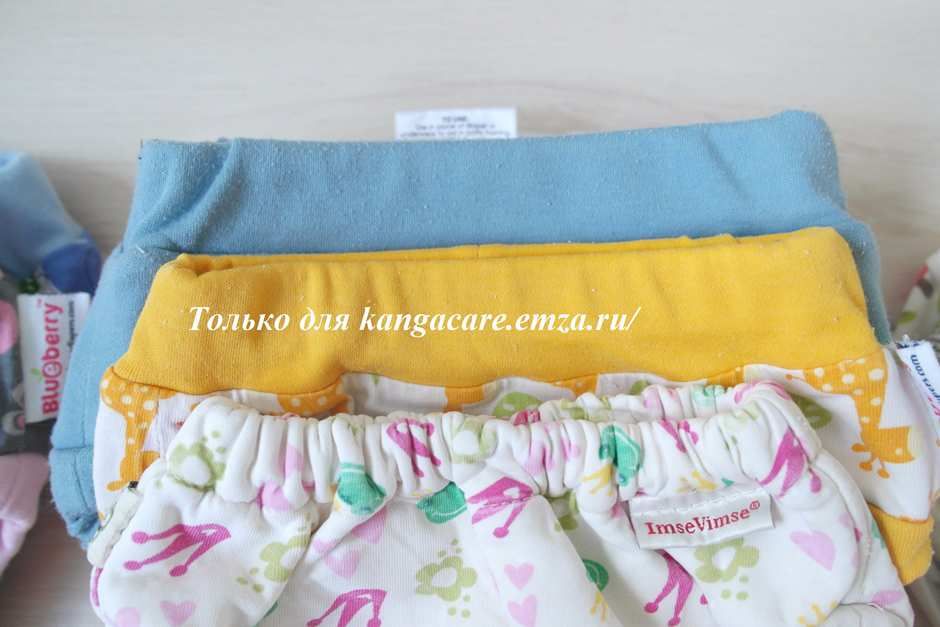 И все же посмотрим на конструкцию «улучшенного» пояса ImseVimse и сравним с широкими и мягкими поясками трусиков EcoPosh и Blueberry. Особенное внимание необходимо обратить на швы притачивания пояса к самим трусикам.