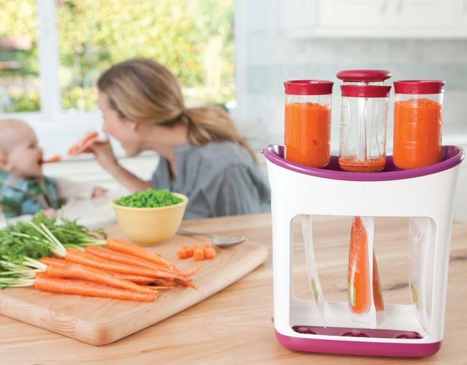 Все просто: одним нажатием Станции Infantino любое пюре и смузи фасуется в мягкую упаковку дой-пак или бутылочки Infantino.
