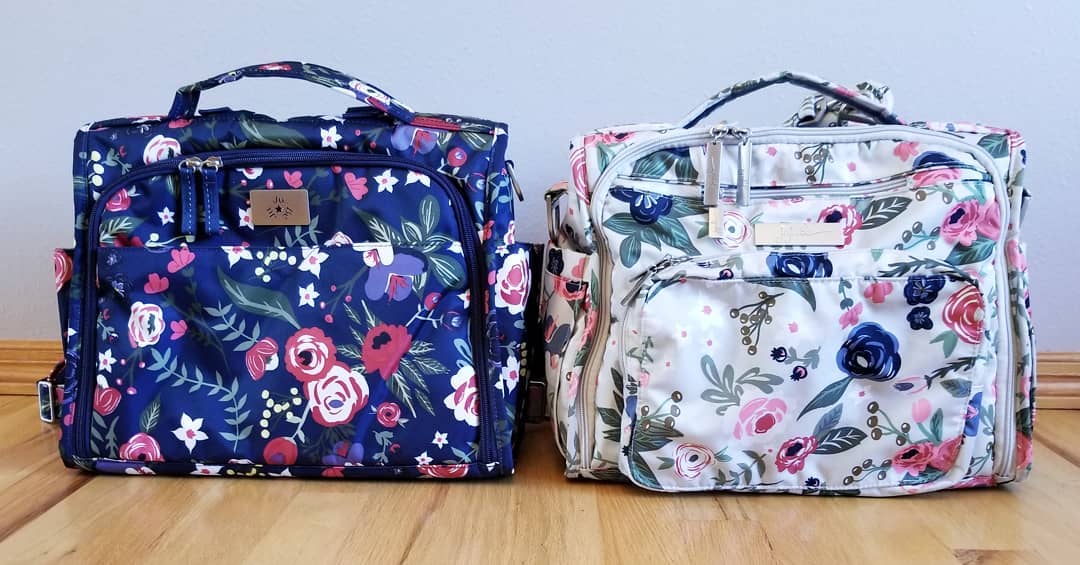 На фото ниже сравнение: рюкзаки-трансформеры Ju-Ju-Be B.F.F в принте Rosy Posy и Classical Convertible в родственном цветочном принте Midnight Posy.