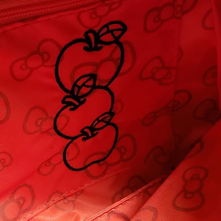 Внутри на белом фоне красуется знаковая надпись: «Ju-Ju-Be for HELLO KITTY».