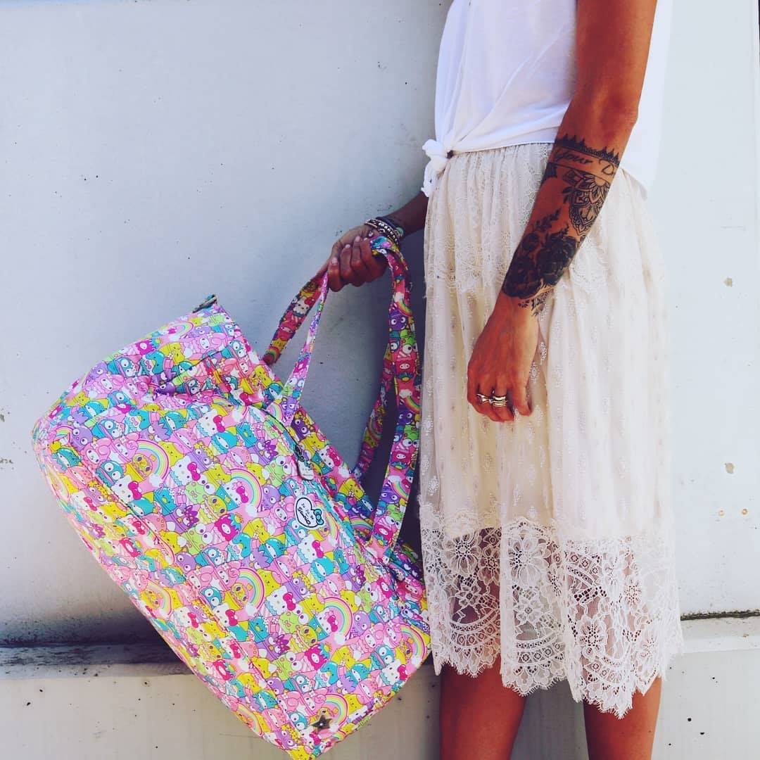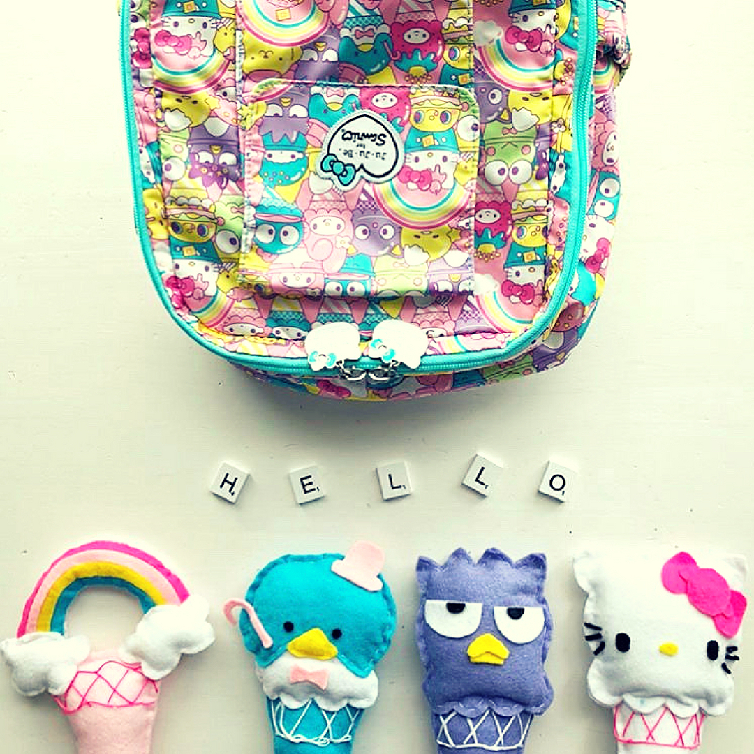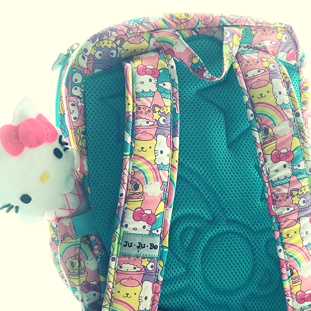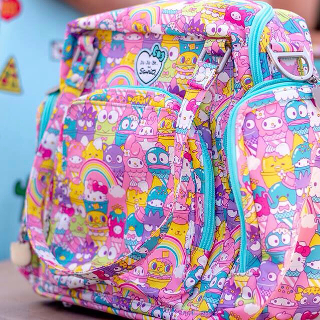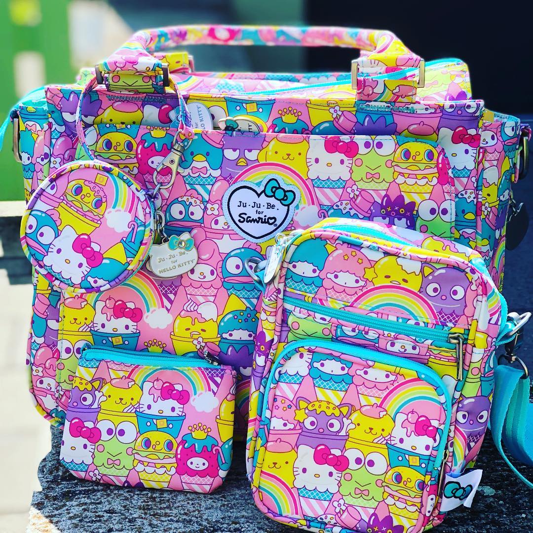 Новая совместная коллекция двух брендов Ju-Ju-Be и Sanrio (Hello Kitty) `Hello Sanrio Sweets` зашкаливает от количества трогательных мордашек и невероятно нежной палитры оттенков. Розовые, лиловые, лимонные, салатовые и голубые рожицы персонажей с забавными выражениями взирают с сумочек и рюкзачков Ju-Ju-Be Hello Sanrio Sweets, повышая градус милоты до критического состояния.