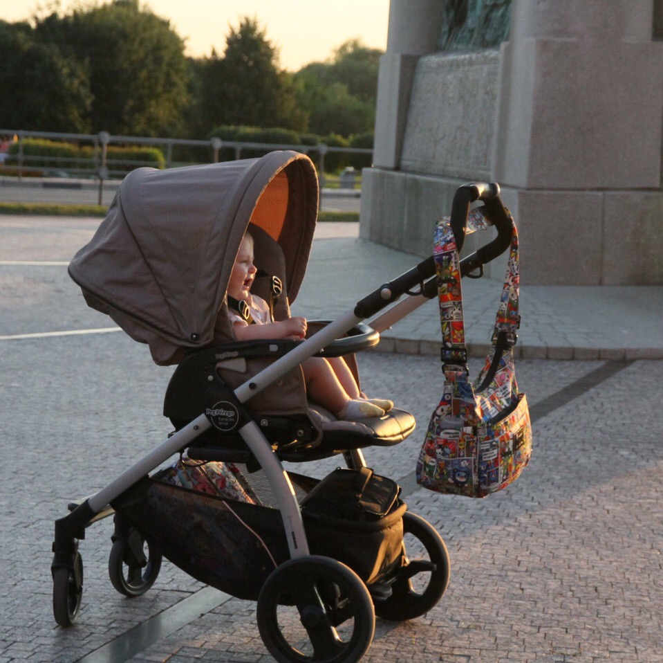 Сумка Be Pumped для кормящей мамы имеет большое боковое отделение для молокоотсоса и сопутствуующих аксессуаров. В комплекте уже предусмотрены: органайзер, сумочка для мокрых вещей и термокейс. Сумка имеет значительный внутренний объем и, именно из-за габаритов, эту модель редко встретишь на коляске в качестве сумки для мамы на каждый день. И тем не менее, высокий уровень организации, сбалансированное наполнение, дизайн и размер делают модель очень удобной для семейных путешествий с детьми, походов с близнецами или малышами-погодками к врачу или поездок на выходные. Поэтому возможность повесить Be Pumped на коляску оказывается как нельзя кстати.