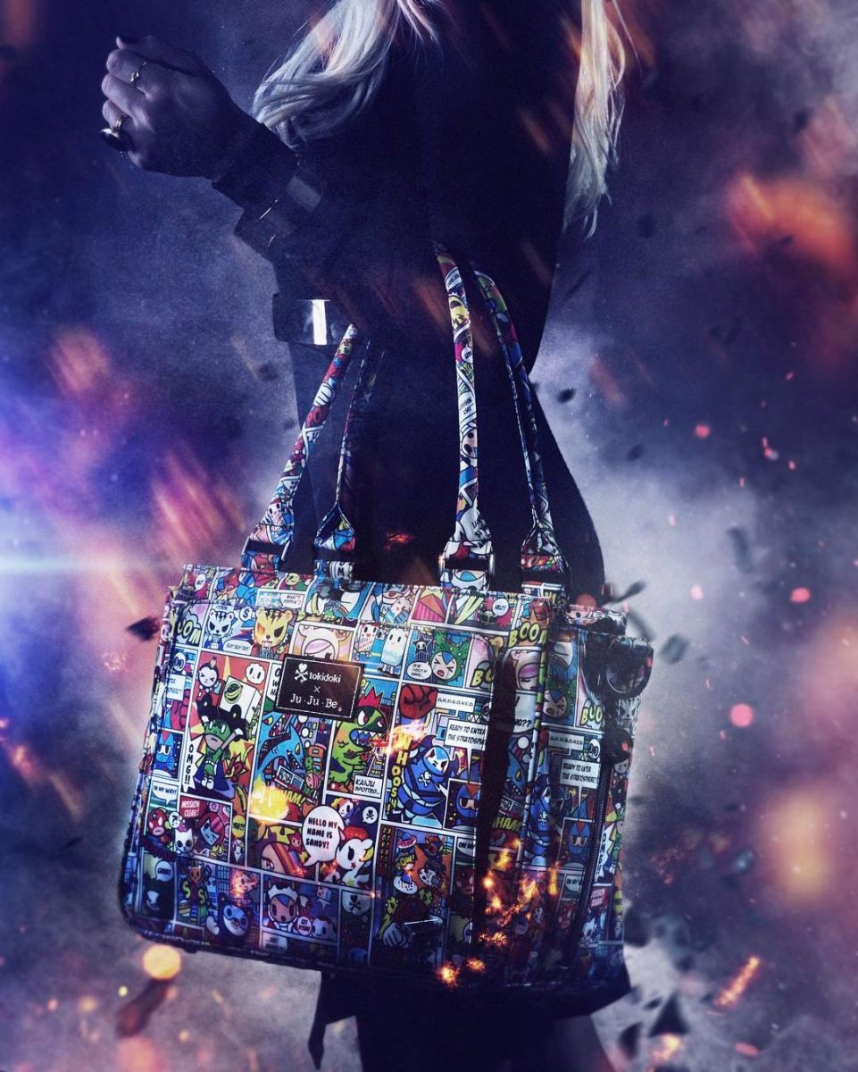 Тема комикса подчеркнута не только белыми рамками на принте, но и стильной черной фурнитурой. Это первые совместные коллекции Ju-Ju-Be и Tokidoki,
