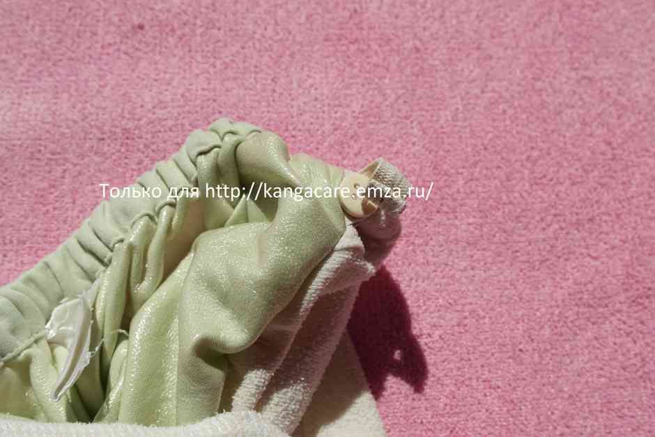 Показательный кадр, на котором мы видим насколько вкладыш фирмы BumGenius длиннее вкладыша Rumparooz (ровно настолько длиннее и сам покет BumGenius против Rumparooz), а также насколько шире вкладыш Rumparooz вкладыша BumGenius (также ровно настолько, насколько шире ластовица подгузника). Равная ширина вкладышей и ластовиц подгузников этих фирм, в отличие от подгузника фирмы Blueberry, дает дополнительную защиту от протечек.