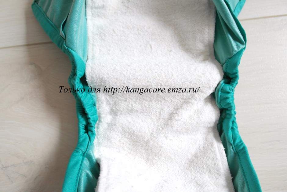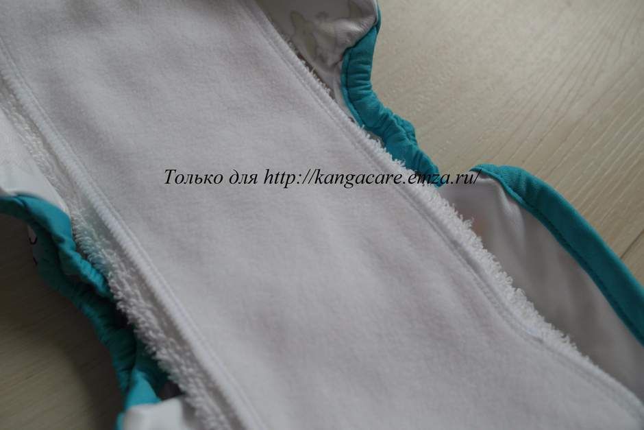 И о наполнении. В первой части статьи про вкладыши мы писали, что для обложки Rumparooz Kanga Care New Born идеально подходят вкладыши из конопли и органического хлопка. На фото видно, как хорошо вкладыш располагается между внутренними бортиками обложки, как он хорошо ложится по длине.