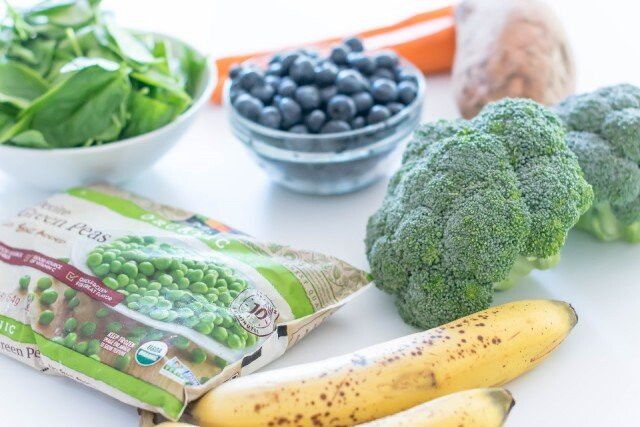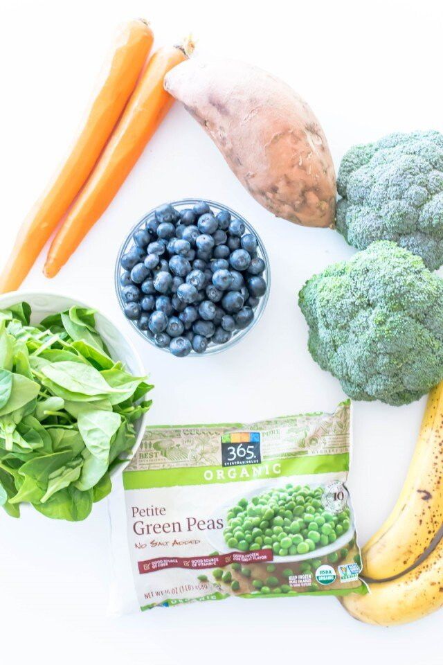 рецепт для детей: Шпинат + Черника + Бананы + Горох