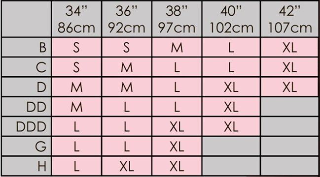 XL= 95B, 95C, 95D, 90D, 85G, 85H