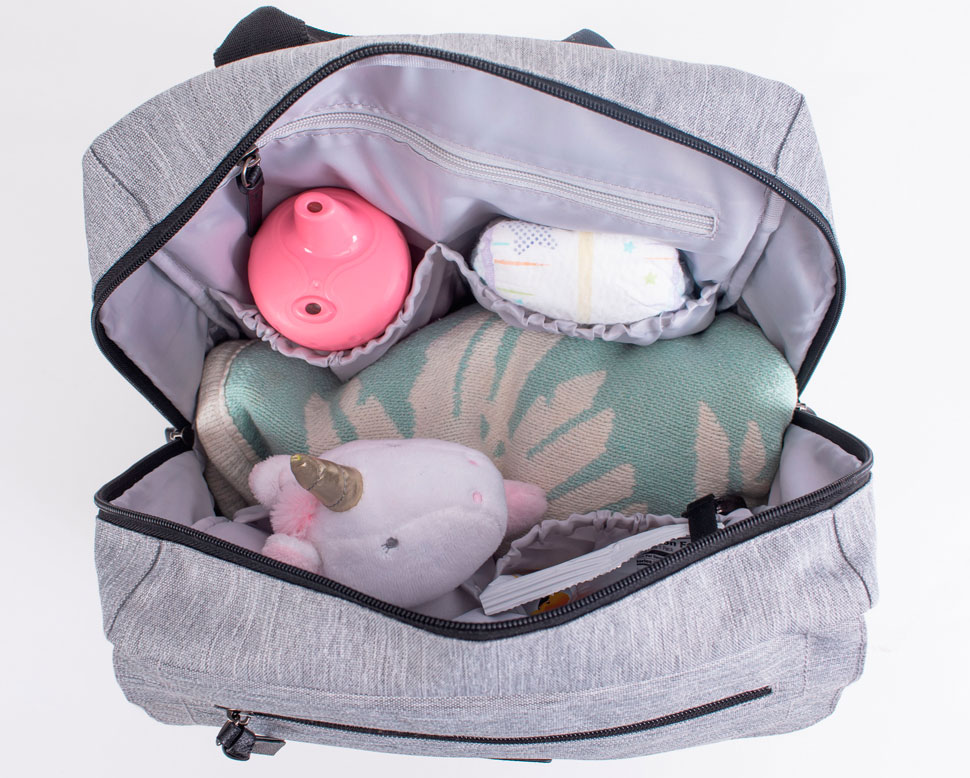 Встроенное изолированное отделение, идеально подходящее для упаковки закусок для детей старшего возраста, два изолированных термо кармана для бутылочек и десять карманов для всего и вся!