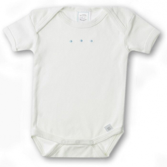 Перекрывающийся вырез горловины позволяет легко переодевать малыша, используются высококачественные заклепки.
