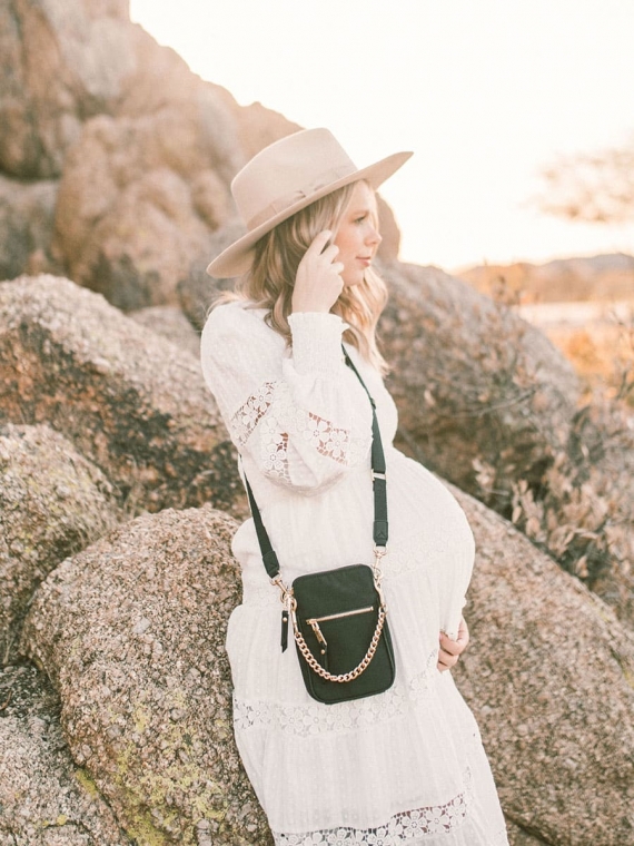 Два прилагаемых ремешка обеспечивают универсальность - носите ее на запястье со стильной цепочкой или через плечо.