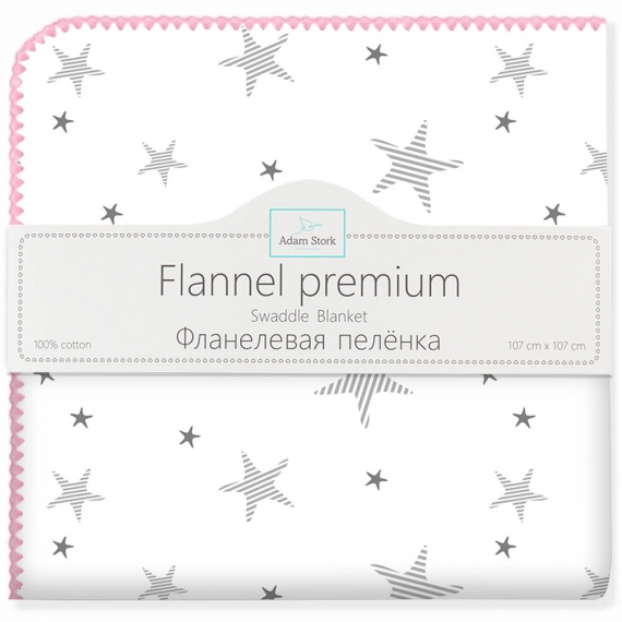 Фланелевая пеленка Adam Stork Premium Cotton Pink Stars