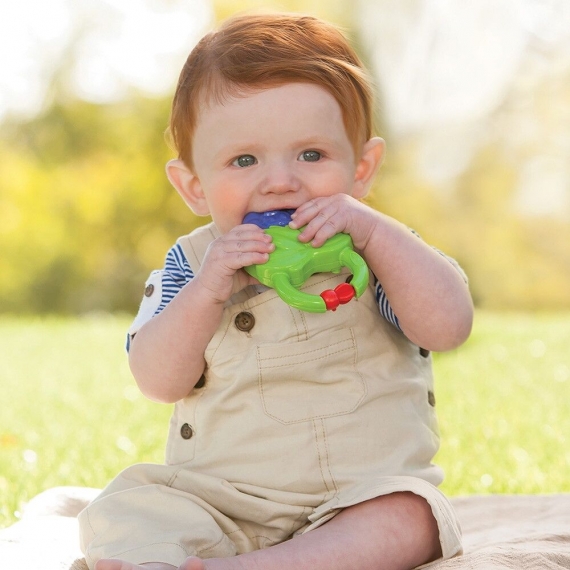 Мягкий и приятный на ощупь прорезыватель при нажатии нежно вибрирует, помогая малышу эффективно массировать дёсны, и снижает болезненные ощущения.
