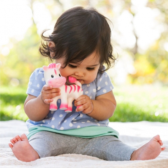 Неповторимый аромат натурального каучука из сока дерева Гевеи делает игрушку-прорезыватель "Зебра" особенной и легко узнаваемой для малыша игрушкой.