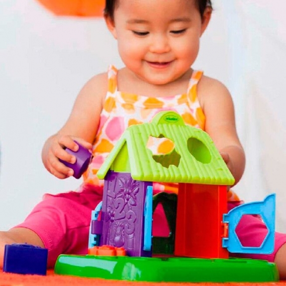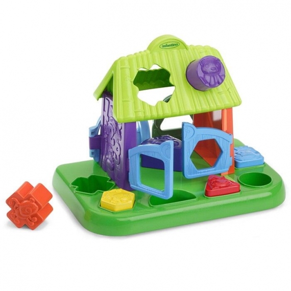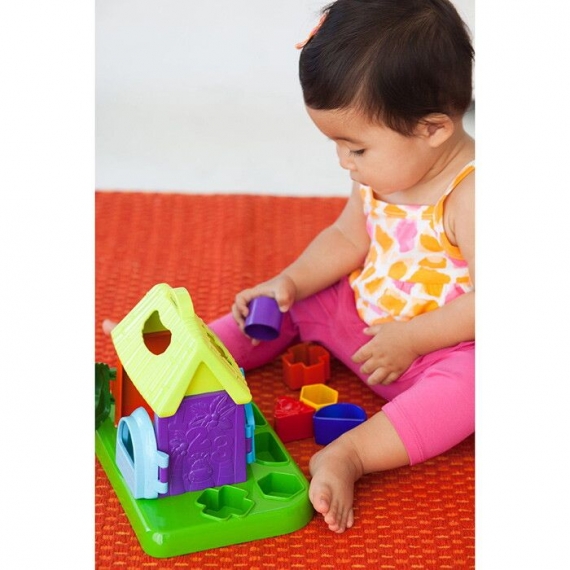 Оригинальный и яркий Сортировщик "Хижина" с высокой крышей и подвижными воротами - незаменимая игрушка для всех малышей, которые уже активно познают мир и готовы начать изучение форм и цветов.