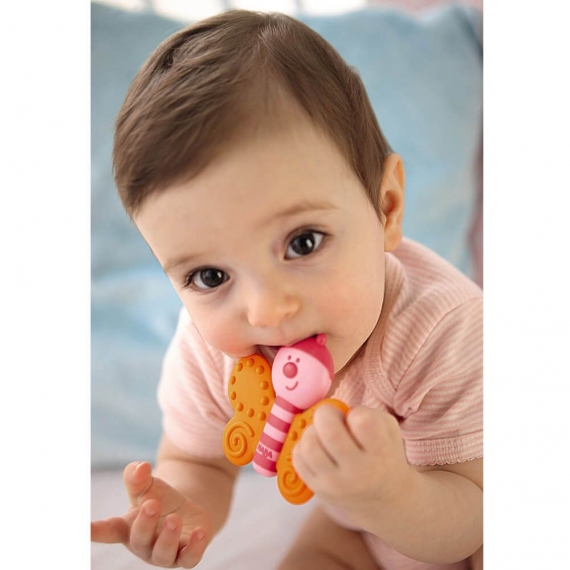 Игрушка - прорезыватель Haba "Бабочка" поможет развлечь кроху и снять дискомфорт с десен в период прорезывания зубок. Помогает развить хватательный рефлекс и моторику ручек.