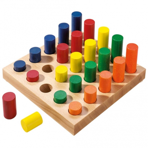 Деревянная развивающая "Джамбо" увлекательная игра для любого ребенка, изготовлен из экологически чистого и долговечного материала - бук. Игрушка представляет собой платформу с отверстиями в которые необходимо по принцыпу цветовой гаммы или от меньшего к большему поставить целендрические брусочки. Игрушка поможет ребенку научиться распознавать основные цвета и размер. В непредужденный игровой форме происходит развитие мелкой моторики, координации движений, логического и пространственного мышления, внимания, воображения и подготовка руки к письму.
