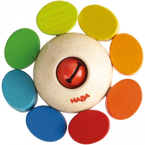 Производитель: Haba (Германия) Игрушка деревянная развивающая "Разноцветные кружочки" Гибкие цветовые элементы и колокольник внутки помогут развлечь малыша. Деревянные детали с резьбой на резинке. функция кольца.