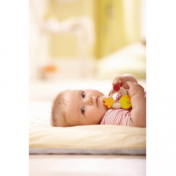Производитель: Haba (Германия) Игрушка деревянная идеально подходит для нежных десен малыша! Погремушка и прорезыватель одновременно. Успокаивает десны малыша. Потрясите, чтобы услышать приятные звуки погремушки. Удобно хватать и держать маленькими.
