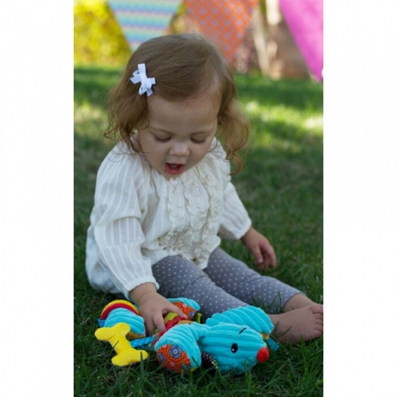 Игрушка дополнена прорезывателем, для успокоения нежных десен малыша.