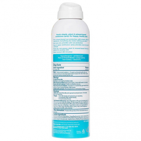 Спрей для загара Honest Mineral сделан без химических аллергенных ингридеентов (т.е. оксибензона и окктиногената), парабенов, наночастиц, ароматизаторов, красителей или наиболее распространенных аллергенов. Неонанооксид цинка является единственным активным ингридеентом. Быстросохнущая, нежирная, минеральная формула, является безопасной для использования всей семьи. Легко наносится и обеспечивает плавное и равномерное покрытие.