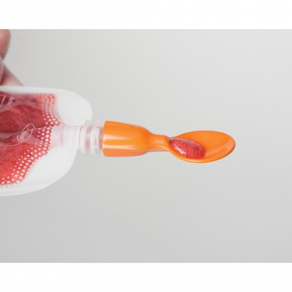 Для детей, которые любят кушать из ложечки, вы можете приобрести набор специальных ложек-насадок Couple a Spoons от Infantino и контейнер Fridge & Freezers Sleeve для удобного хранения пакетиков Squeeze Pouches в холодильнике и морозильной камере.