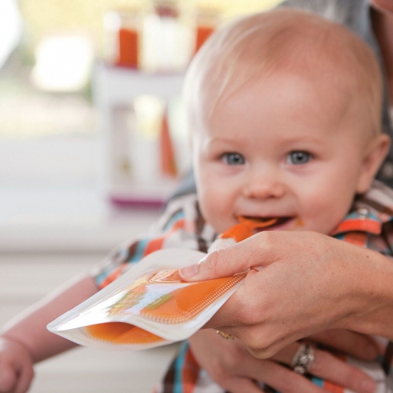Мягкие пакетики с закручивающейся крышкой Squeeze Pouches 50 шт. в упаковке предназначены для расфасовки в них детского питания и смузи с помощью станции Squeeze Station. Они надолго сохранят вкус и свежесть фруктовых и овощных пюре, приготовленных в домашних условиях.