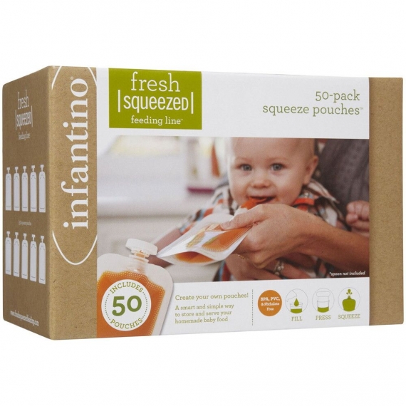 Для детей, которые любят кушать из ложечки, вы можете приобрести набор специальных ложек-насадок Couple a Spoons от Infantino и контейнер Fridge & Freezers Sleeve для удобного хранения пакетиков Squeeze Pouches в холодильнике и морозильной камере.