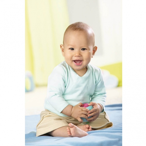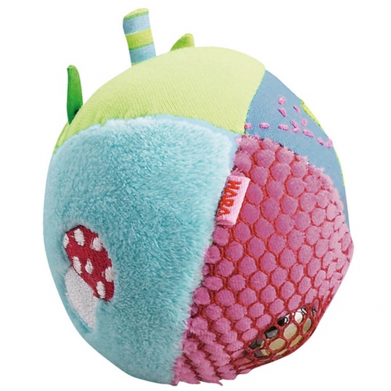 Мягконабивная игрушка "Веселый мяч" включает в себя стеклянный шарик который хранится в надежном месте. Мяч с большим количеством акустических элементов различные типы ткани для тактильного исследования. Включает в себя стеклянную самородок внутри шарить сети.