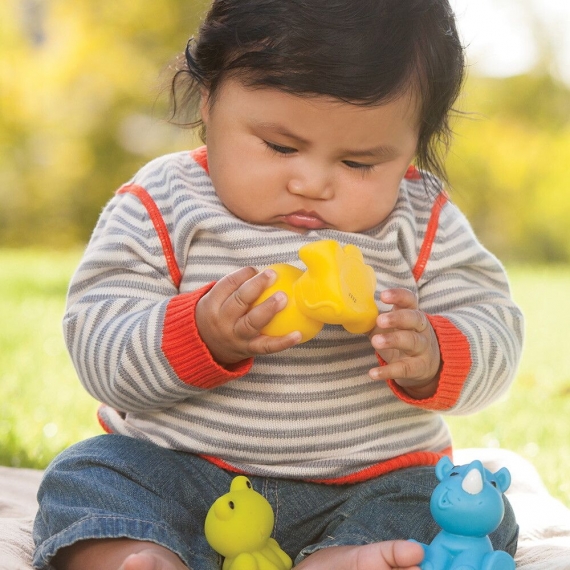 Мылышу непременно понравится сжимать и кусать их, а родители смогут придумать множество ролевых игр с участием Львенка, Носорожка и их друзей.