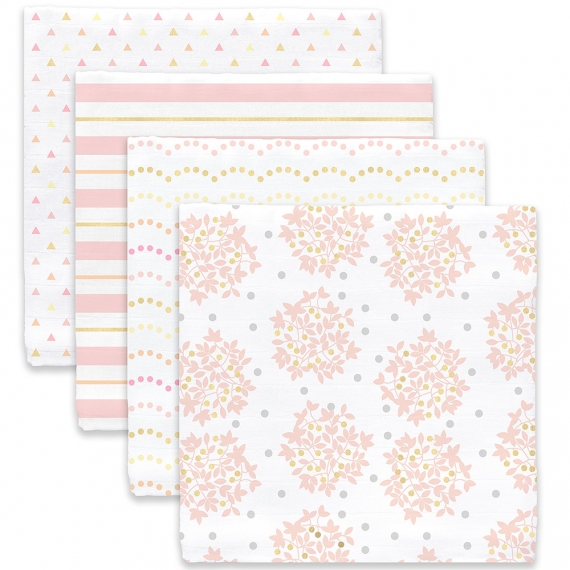 4 муслиновые пеленки SwaddleDesigns из 100% хлопкового муслина с разными рисунками в подарочной упаковке.