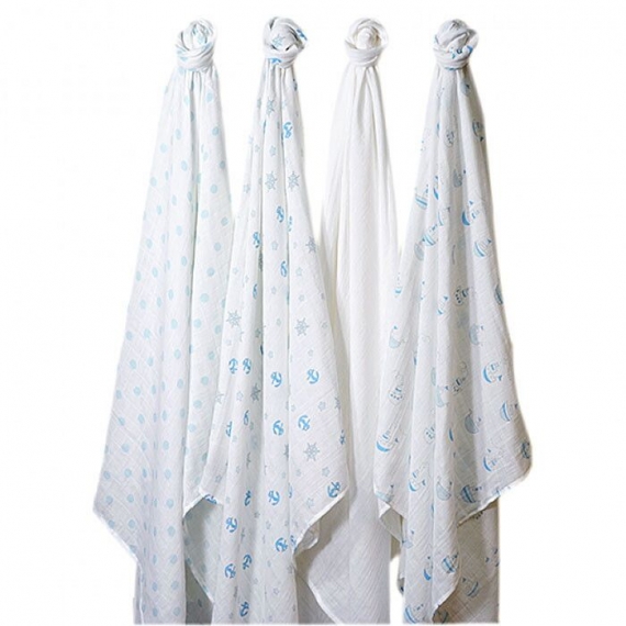 4 муслиновые пеленки SwaddleDesigns из 100% хлопкового муслина с разными рисунками в подарочной упаковке.