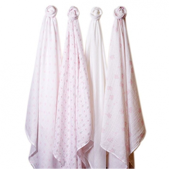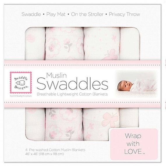 4 муслиновые пеленки SwaddleDesigns из 100% хлопкового муслина с разными рисунками в подарочной упаковке.