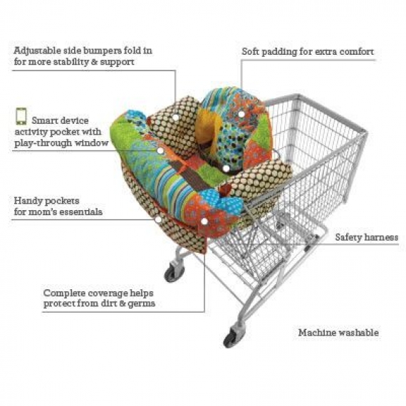 В магазине эта мягкая накидка с уютным винтажным рисунком в стиле "пэчворк" превратит любую тележку для покупок в чистый, безопасный и удобный для малыша уголок.