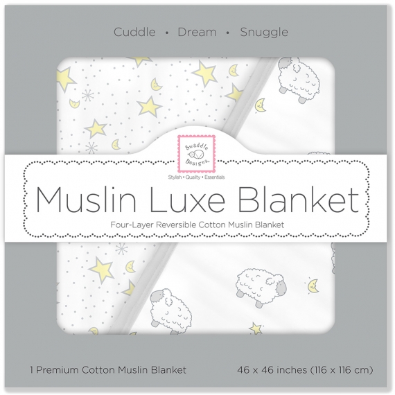 Одеяло Swaddle Designs Муслин ЛЮКС - двухстороннее, обе стороны сочетаются между собой в цветовом решении, но имеют разный дизайнерский рисунок. Нежную плотность одеяла обеспечивают четыре слоя хлопоковой ткани с воздушным плетением Муслин. Удобный размер: подойдет как для младенца, так и для ребенка постарше.