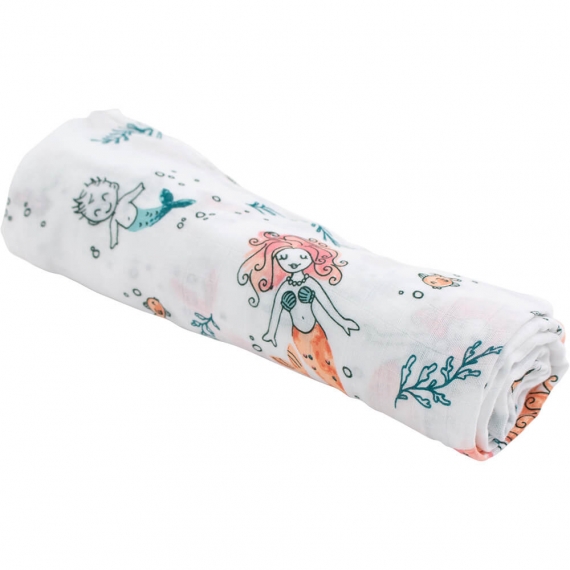 Пеленка Bébé au Lait Swaddle Blankets Bamboo Muslin Mermaid произведена из премиального хлопка и бамбука с особым “воздушным” плетением волокон ткани муслин, что делает пеленку особенно нежной и “дышащей”. Роскошная мягкость и идеальный размер позволяют пеленать вашего малыша максимально аккуратно и безопасно, создавая для него уютное “гнездышко” для сна и отдыха. Множество дизайнерских решений принтов от детских до классических позволяет выбрать пеленку, соответствующую вашему стилю и ощущению прекрасного. Несомненно, вы оцените высокое качество и удобство пеленания с Bébé au Lait Swaddle Blankets настолько, что вам захочется использовать их везде - как легкое летнее одеяло, простыню в коляске, полотенце для малыша, накидку от солнца на коляску или автокресло.