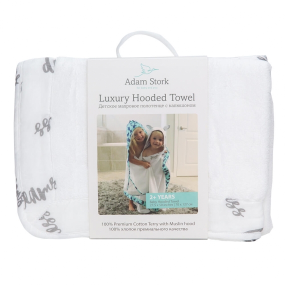 Полотенце с капюшоном Adam Stork Happiness для детей от 2 лет и старше. Изготовлено из нежной, хорошо впитывающей махровой ткани из 100% хлопка. Увеличенный размер полотенца, теперь и дети старшего возраста могут укутаться в полотенце после купания.
