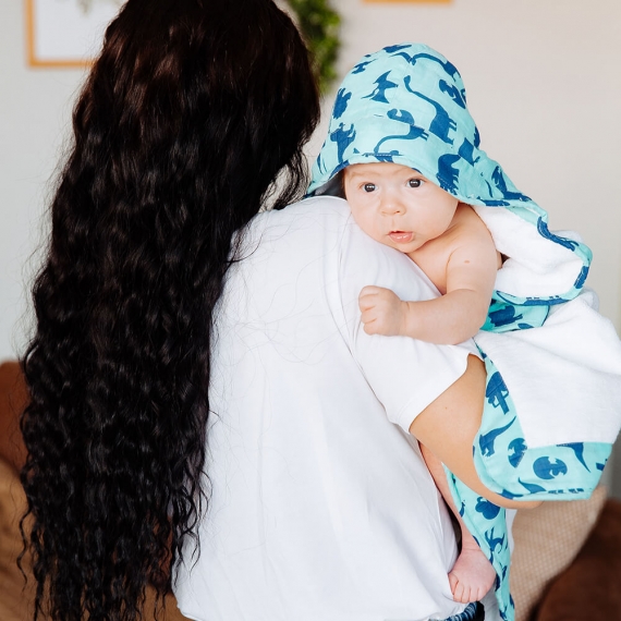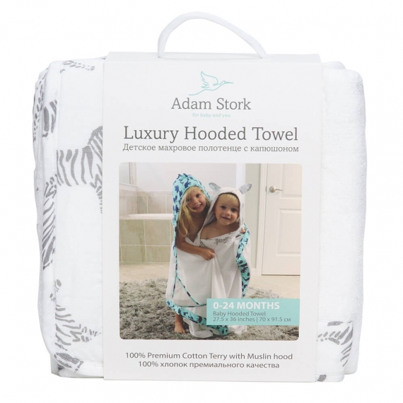 Полотенце для новорожденных с капюшоном Adam Stork Zebra изготовлено из нежной, хорошо впитывающей махровой ткани 100% хлопка. Большой размер полотенца позволяет обернуть малыша целиком, а капюшон защитит голову, поэтому вы всегда будете уверены, что малышу после водных процедур сухо, тепло и уютно.