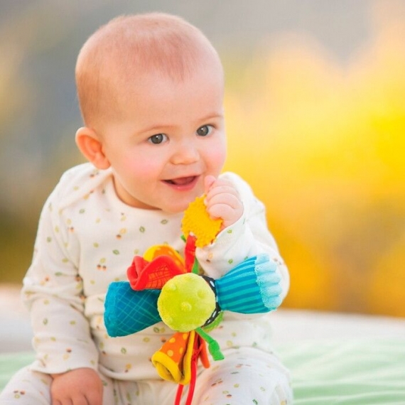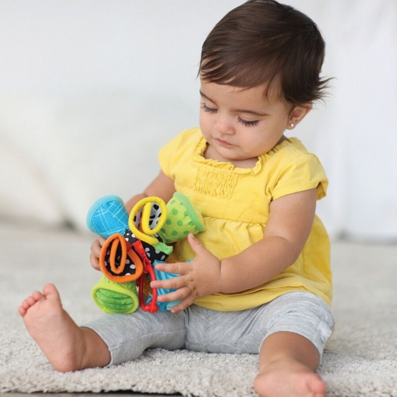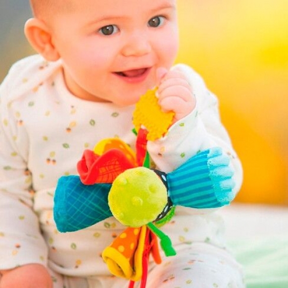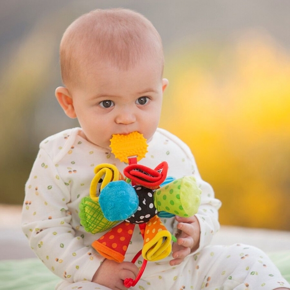 Прикрепите игрушку на детском автокресле, коляске и дугах игрового коврика или просто дайте малышу в руки.