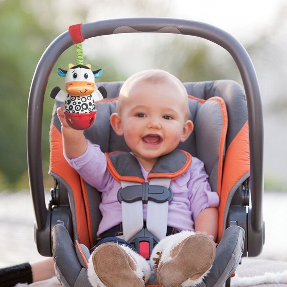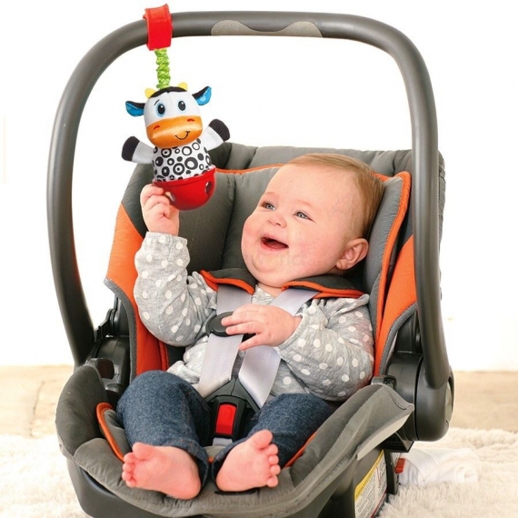 Легко крепится на детском автокресле, коляске и дугах игрового коврика.