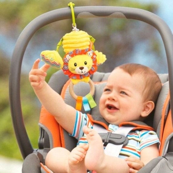 Игрушка подвеска Львенок с гривой из шуршащей ткани понравится малышу и развлечет его на прогулке и в дороге.