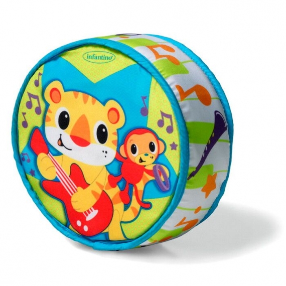 С ярким Музыкальным Барабаном музыка будет звучать, когда малыш сам этого захочет. Достаточно хлопнуть по нему маленькой ручкой, чтобы услышать звук одной нежной ноты или прокатить по поверхности для длительного звучания пианолы.