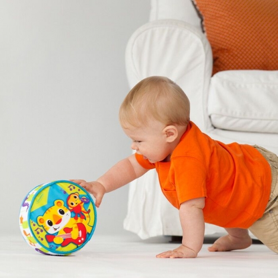 Толкни барабан вперед, чтобы услышать переливы нот и скорее ползи следом, чтобы музыка не кончалась! Для безопасности малышей сделаны мягкими все поверхности музыкального барабана.