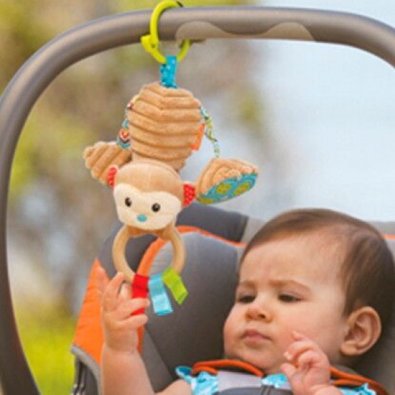 Забавная Обезьянка с шуршашими ушками полюбится малышу и развлечет его на прогулке и в дороге. Игрушку легко удержать маленькими ручками, потянуть, и она, вибрируя, подпрыгнет вверх на эластичной ленте.