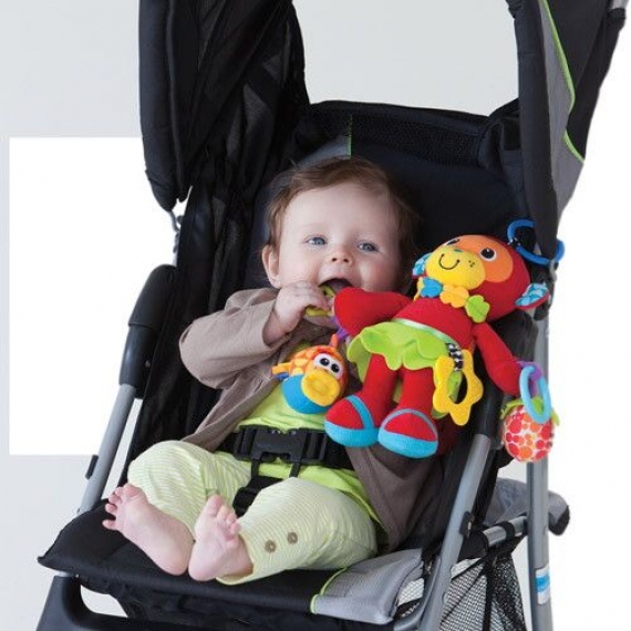 С помощью застежки-клипсы игрушку можно легко закрепить на детском автокресле, коляске и дуге игрового коврика или просто дать малышу в руки.
