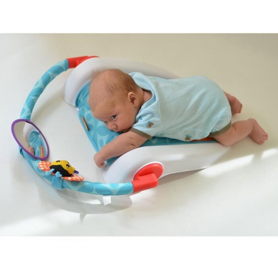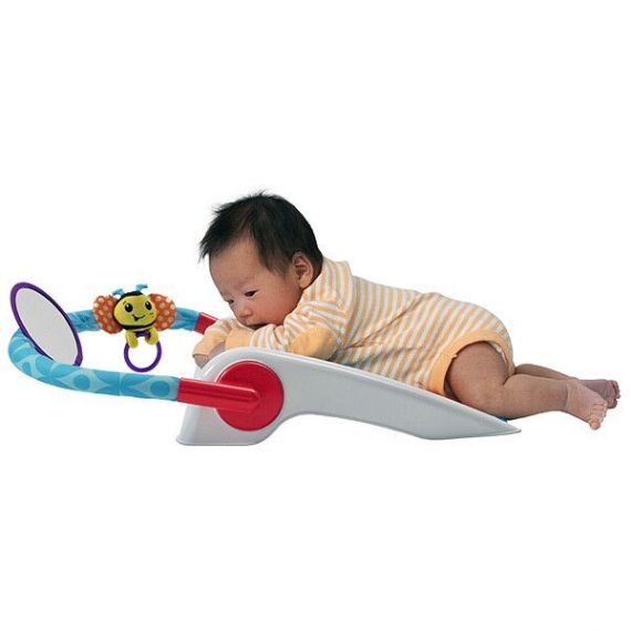 Дуга с игрушкой и безопасным зеркальцем, приковывающими внимание малыша, устанавливается в разных положениях для прохождения всех этапов укрепления мышц шеи.