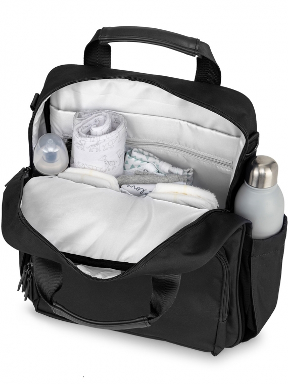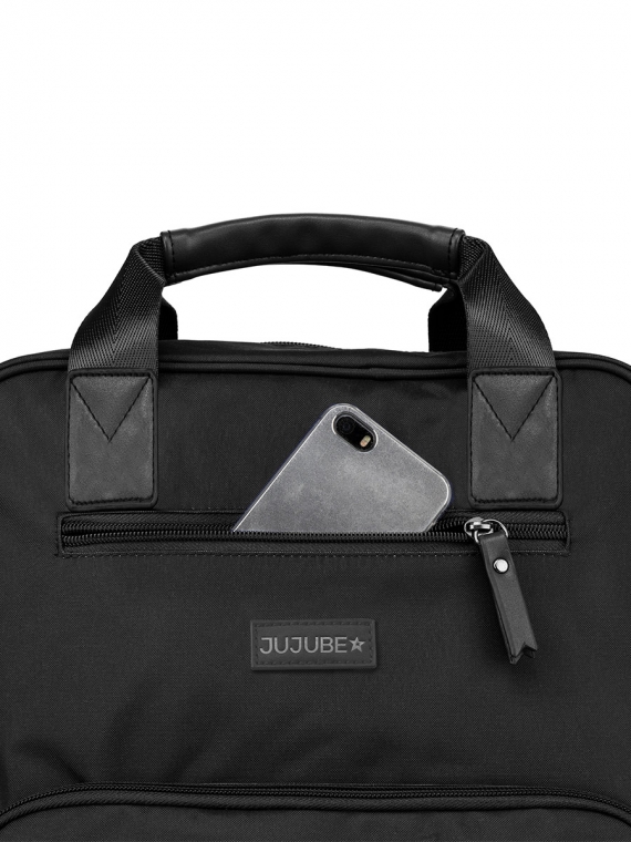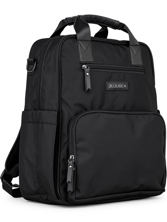Рюкзак с креплением на коляску Nature Babe Black JuJuBe с удобными мягкими вентилируемыми лямками и ручкой для переноски сверху. Прочная металлическая фурнитура. Всего 13 карманов; Карман для мобильного телефона; Расширяемые внешние карманы для бутылок; Внутренние карманы для бутылок; Внутренний защитный карман на молнии; Мягкий карман для компьютера; Карман для мамы с брелоком для ключек. Пеленальный столик для пеленания с эффектом памяти.