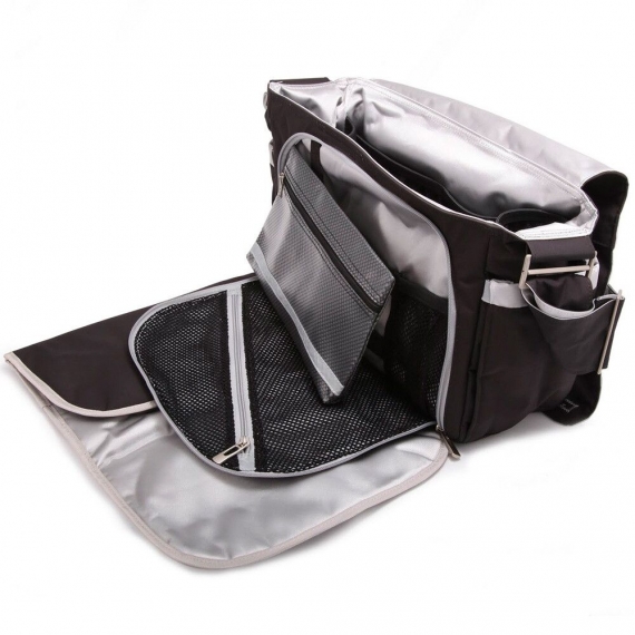 Сумка отличается элегантным внешним видом и дополнит ваш запоминающийся образ. Множество карманов этой сумки для коляски черного с серебром цвета, позволят разместить все необходимое для прогулки, все будет лежать в порядке и будет легко доступным. Купить сумку для коляски недорого вы можете позвонив по бесплатному тел. 8(800)700-0399.