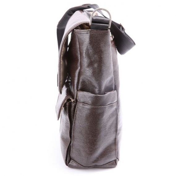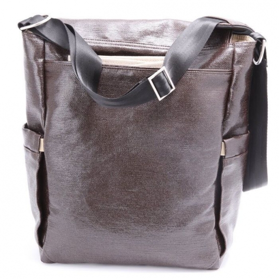 Вместительное основное отделение с сетчатыми карманами для салфеток и подгузников и карманом на молнии для мелочей, верхний карман на застежке-молнии для очков, документов и прочих вещей, карман для пеленального матрасика (в комплекте), журналов или книг. 2 средних отделения для телефона, кошелька, 2 боковых кармана для бутылочек. Плечевой ремень по длине регулируется.